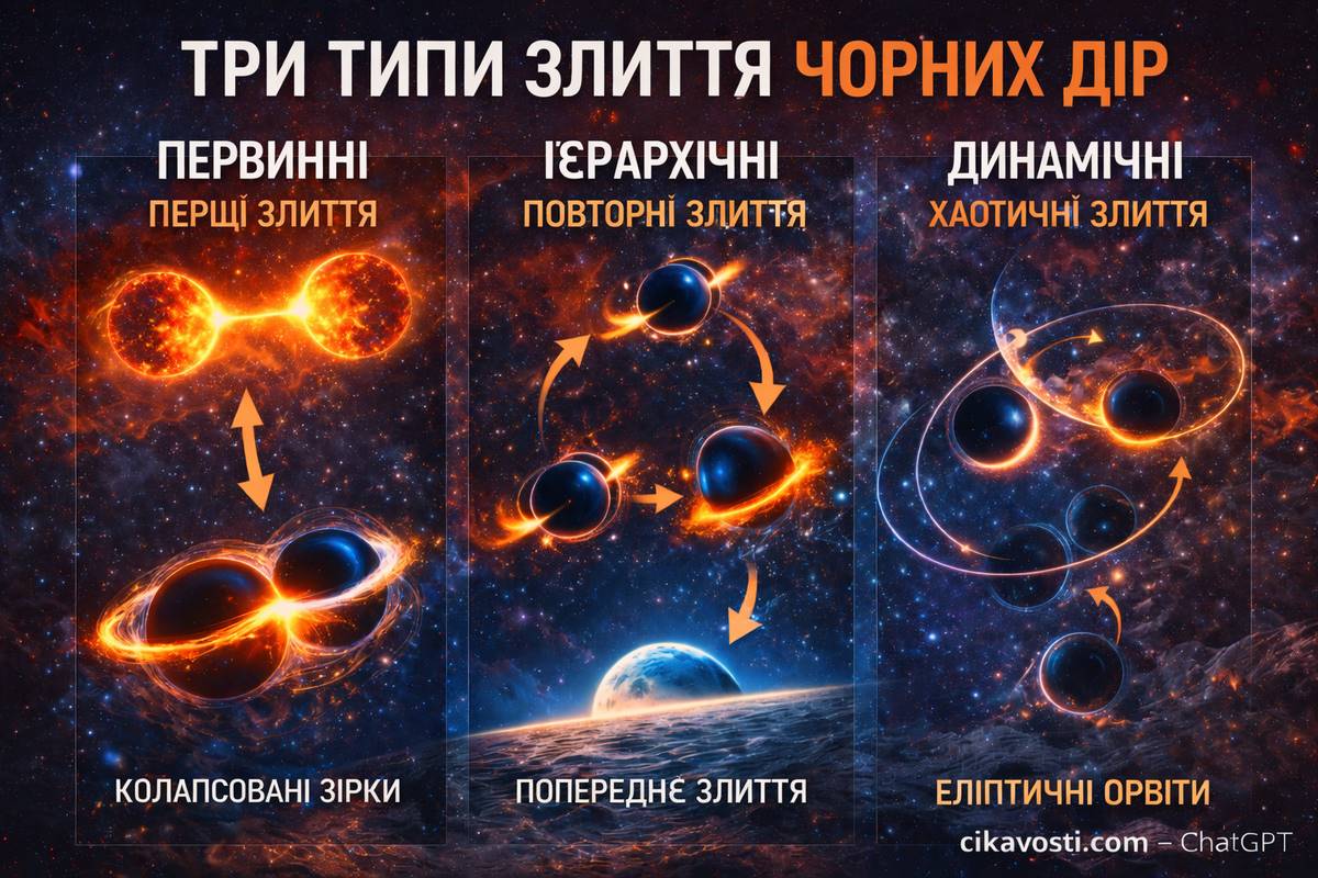 Відкриття трьох родин — не просто класифікація. Воно говорить про те, що у Всесвіті одночасно відбуваються три принципово різні механізми виробництва чорних дір, кожен з яких домінує в різних умовах. Це міняє те, як ми розуміємо еволюцію масивних зірок, роль зоряних скупчень і навіть динаміку галактик.