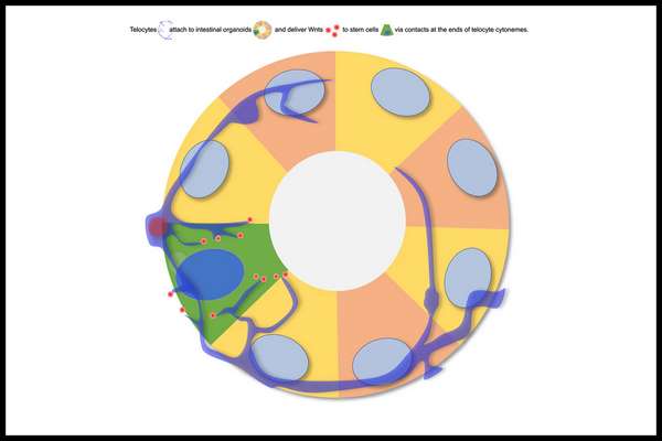 Ці сигнали Wnt — ключ до самооновлення й диференціювання клітин епітелію кишечника, який повністю оновлюється кожні 4–5 днів. «Ми виявили синапсоподібні контакти між телоцитами та стовбуровими клітинами», — каже професор Девід Віршуп. Це спростовує попереднє уявлення про вільну дифузію молекул у криптах.