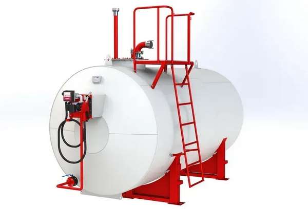 - Резервуар для топлива. Изготавливается из стали или пластика, может иметь объём от 200 до 5000 литров и более. Часто выполняется в двустенной конструкции, что повышает безопасность и позволяет отслеживать герметичность.