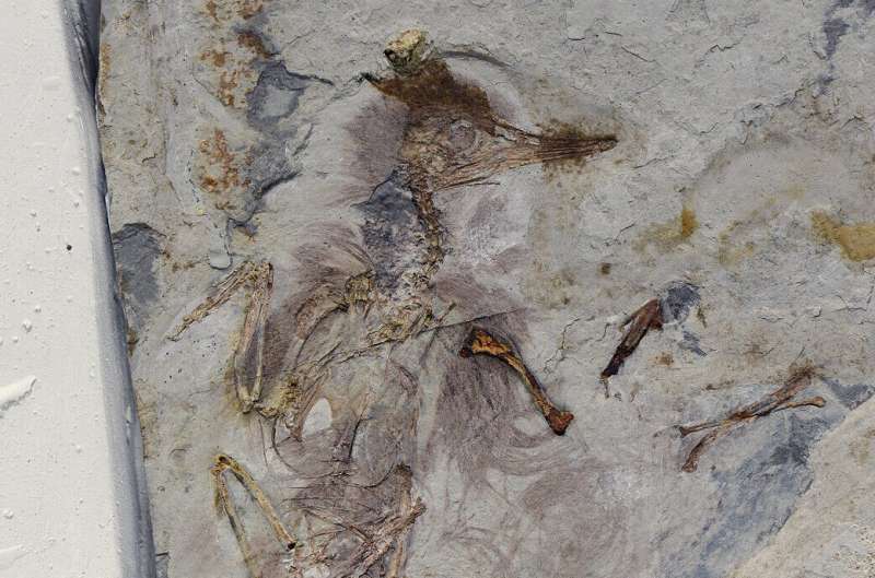 Нове дослідження показує, що скам’янілість маленького птаха Chromeornis funkyi зберегла унікальний слід його смерті — понад 800 камінців, що застрягли в горлі та, ймовірно, спричинили задуху.