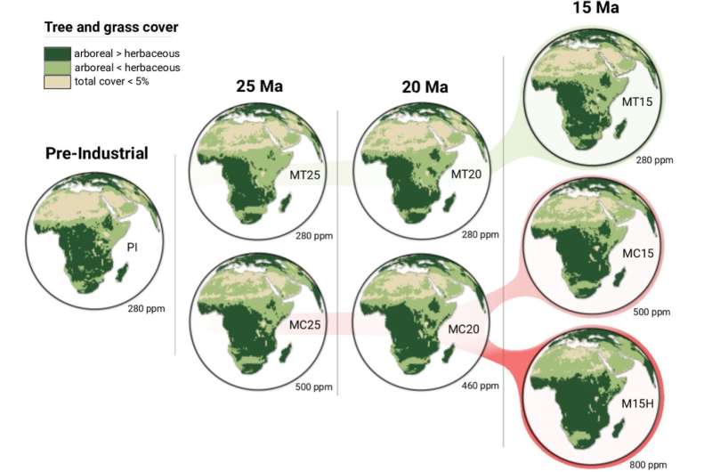 Команда зі Стокгольмського університету, Швейцарської вищої технічної школи Цюріха та Шведського музею природознавства вперше змоделювала, як тектонічні процеси вплинули на кліматичні умови Африки 25–15 мільйонів років тому. За словами Нікласа Вернера, головного автора дослідження, «тектонічне підняття в поєднанні зі зниженням рівня CO? у середньому міоцені суттєво зменшило лісовий покрив і сприяло розширенню пасовищ у Східній і Центральній Африці».