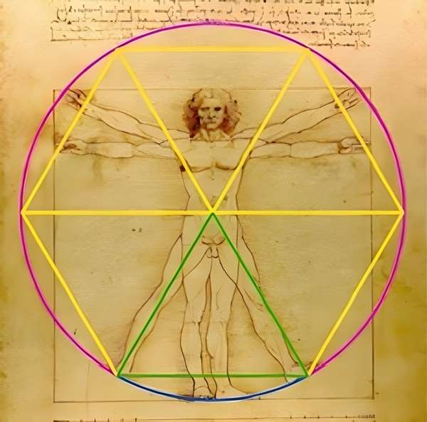 Це відкриває нове розуміння зображення: не як простого ідеалу краси, а як точного відображення гармонії природи через геометрію. Значення рівностороннього трикутника в промежині не випадкове — воно свідчить про приховану симетрію, що керує формою людини і світом.