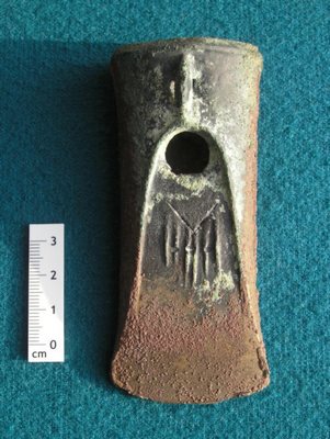 Бронзова сокира, знайдена на місці розкопок Семиярка. Джерело: В. К. Мерц та І. К. Мерц