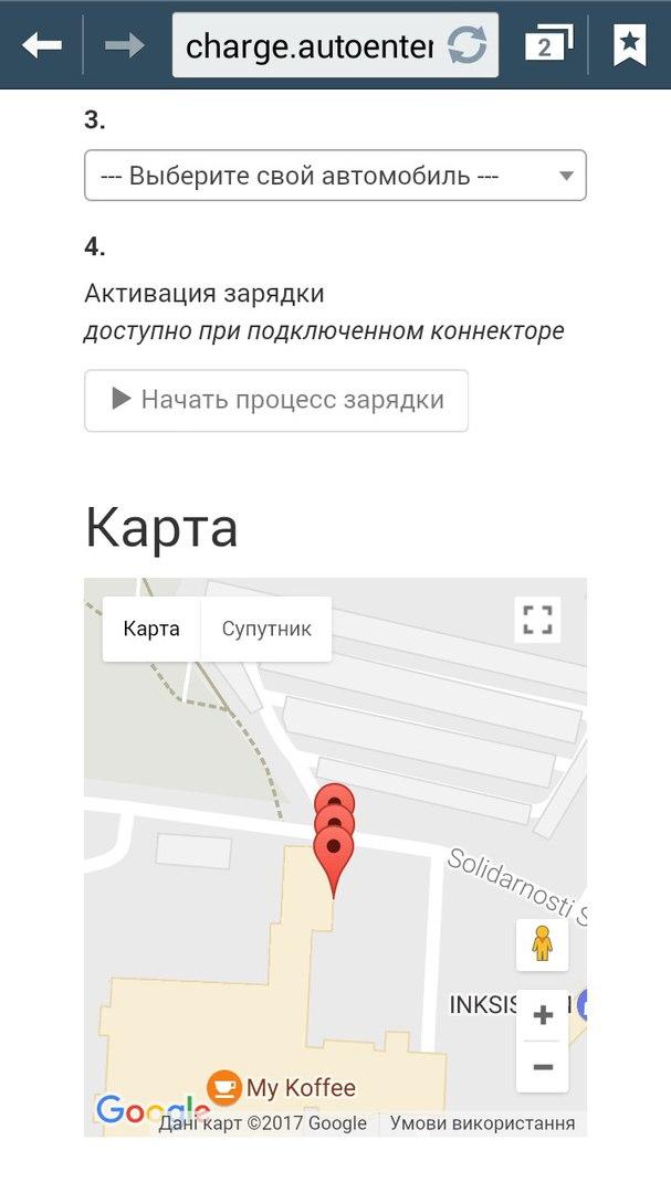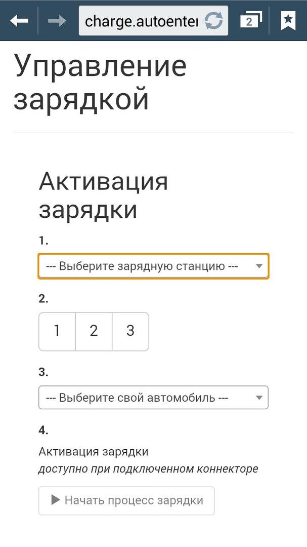 - Полная онлайн авторизация через вэб сайт. Для возможности использования зарядных станций, необходимо зарегистрировать свой электромобиль по специальной форме на сайте charge.autoenterprise.com.ua