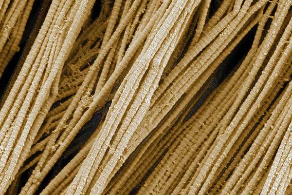 Колагенові волокна, що утворюють структурний каркас дерми, з віком змінюються. Вони розташовані уздовж так званих “ліній Лангера”, які визначають механічну поведінку шкіри залежно від напрямку розтягування. У молодому віці волокна зберігають еластичність і рівномірно розподіляють натяг, запобігаючи заломам.