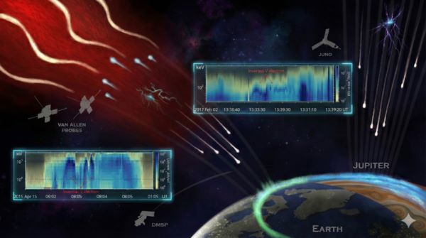 Порівняльна схема процесів прискорення полярних сяйв на Землі та Юпітері. Автор зображення: С. Тянь та З. Яо