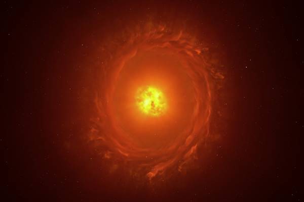 Художнє зображення гігантської, вмираючої зірки WOH G64. (ESO/L. Cal?ada)